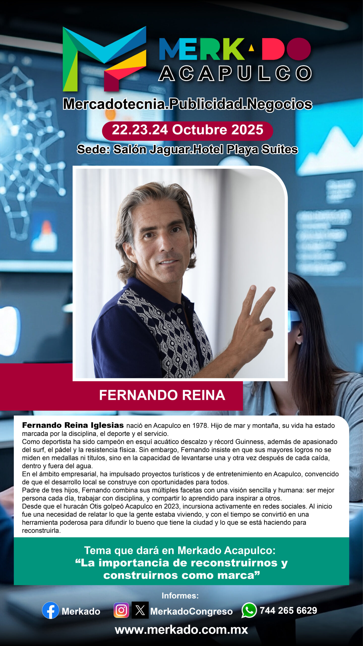 Fernando Reina Iglesias nació en Acapulco en 1978. Hijo de mar y montaña, su vida ha estado marcada por la disciplina, el deporte y el servicio.